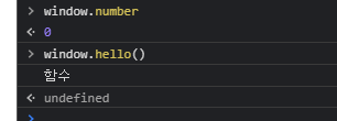 이렇게 선언해뒀을때 브라우저의 window객체의 프로퍼티로 들어가게된다. 참고로 함수도 마찬가지이다.