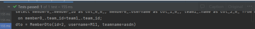 단순히 값 하나만 조회하기위해선 위의 메소드를 넣어주면 된다. 하지만 실제로는 username뿐아니라 나이 등의 여러 값을 다같이 조회해야할 것이다. 이럴때 DTO를 사용하게 된다.
