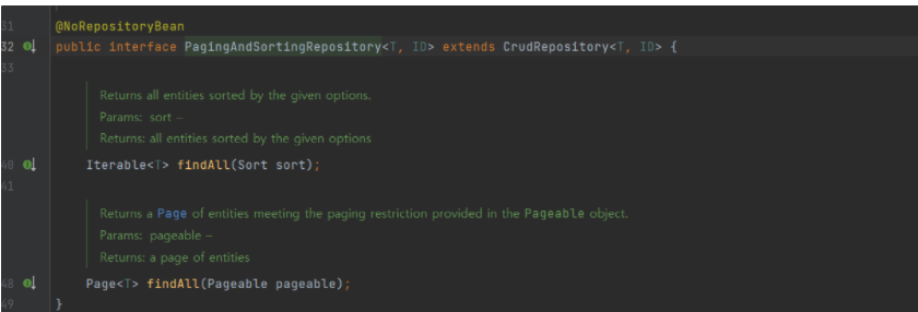 PagingAndSortingRepository에 들어가보면 이렇게 두개의 findAll이 정의되어있다.