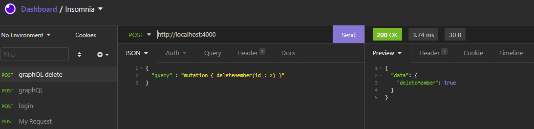 지금까지 알아본것은 Query와 Mutation 중에 단순 데이터 조회를 위한 Query였다. 이제 Mutation에 대해서 알아보자.