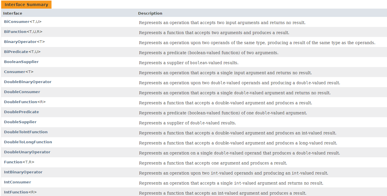 https://docs.oracle.com/javase/8/docs/api/java/util/function/package-summary.html