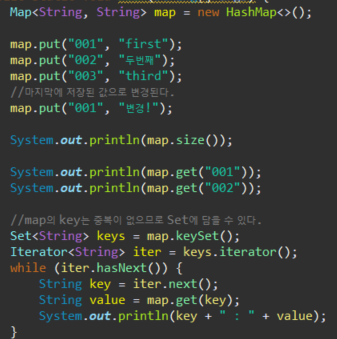 map인터페이스를 구현한 Collection 프레임 워크 클래스에는 대표적으로 HashMap이 있다.