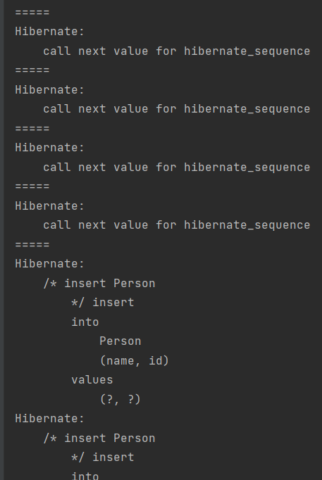 em.persist 할때마다 hibernate_sequence로부터 값을 가져와서 할당하는 듯 하다. 그 이후에 트랜젝션이 커밋되면 플러시되면서 insert문들이 연달아 나가는듯 하다.