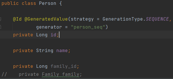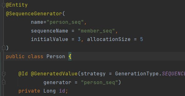 @Id @GeneratedValue(strategy = GenerationType.SEQUENCE,