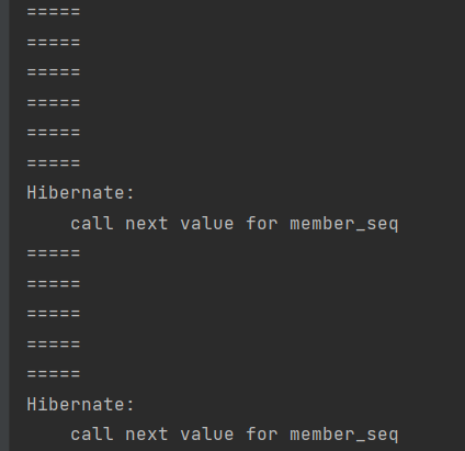 IDENTITY 전략은 이렇게 persist 할때마다 insert 문이 나간다. 신기 ㅋㅋㅋ IDENTITY 전략은 id의 타입이 String 이어도 pk 값이 1 2 3 4 이렇게 순차적으로 증가하면서 할당된다.