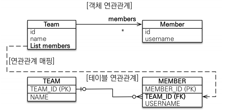 만약 Team의 members에 새로운 멤버를 하나 추가한다고 하면 디비에서는 Team 테이블이 아닌 Member 테이블에 값이 추가되거나 변경된다는 말이다.