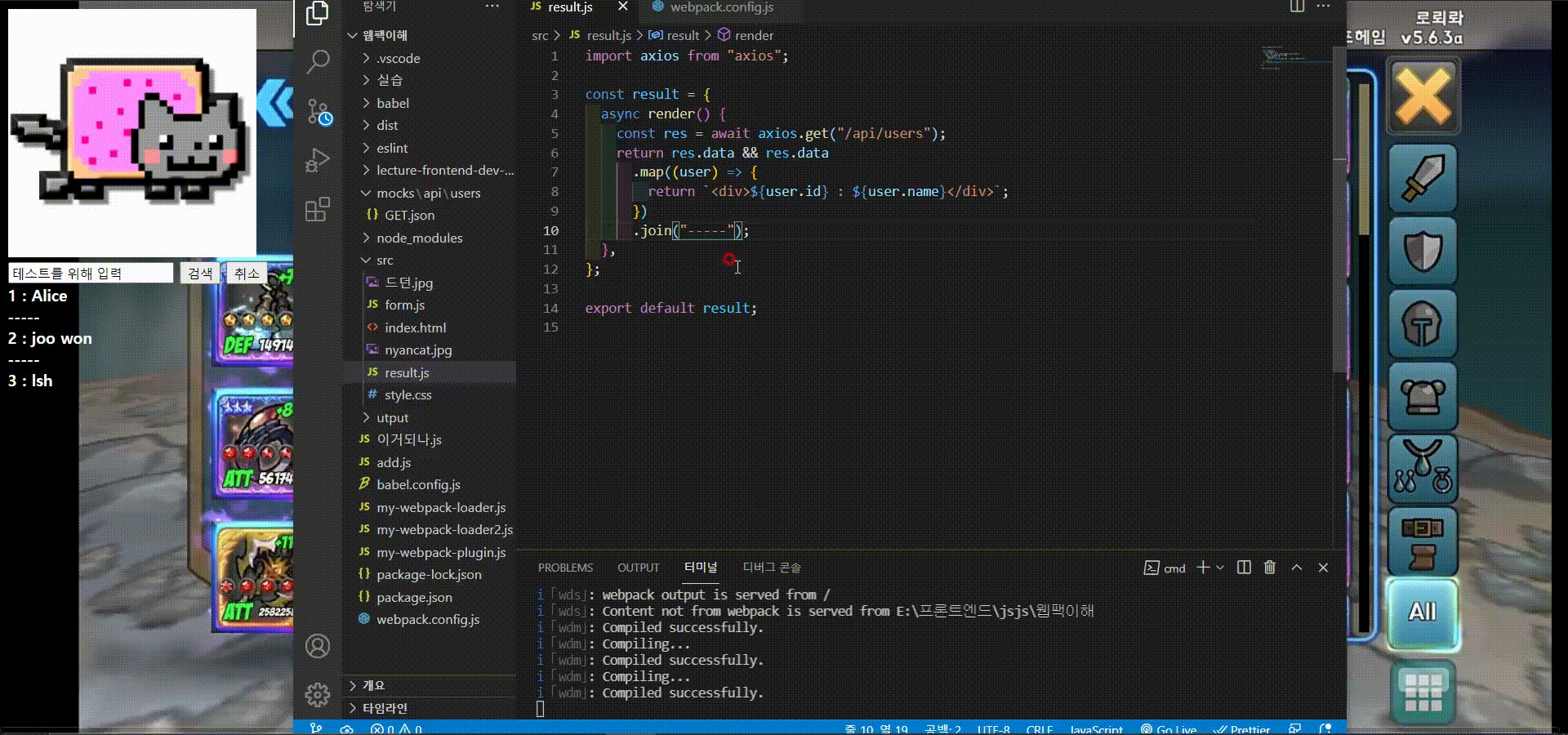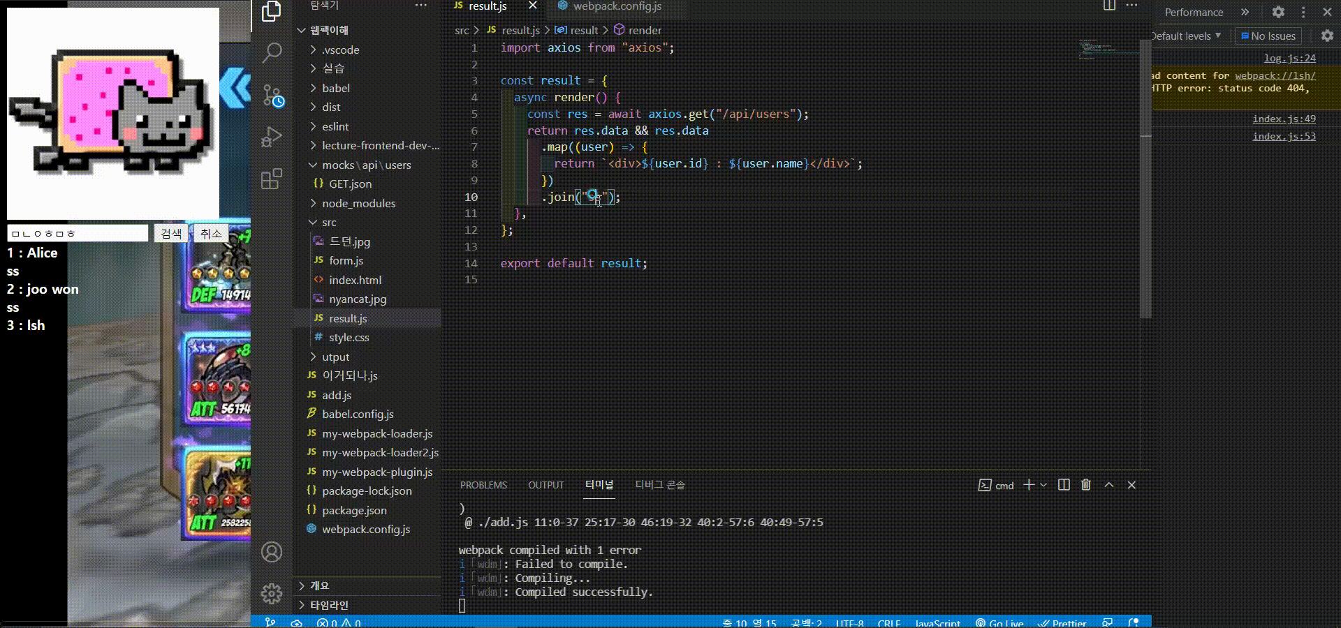 (참고로 webpack 설정 파일은 건드려도 반영이 안된다. 서버를 내렸다가 다시 실행해야한다)